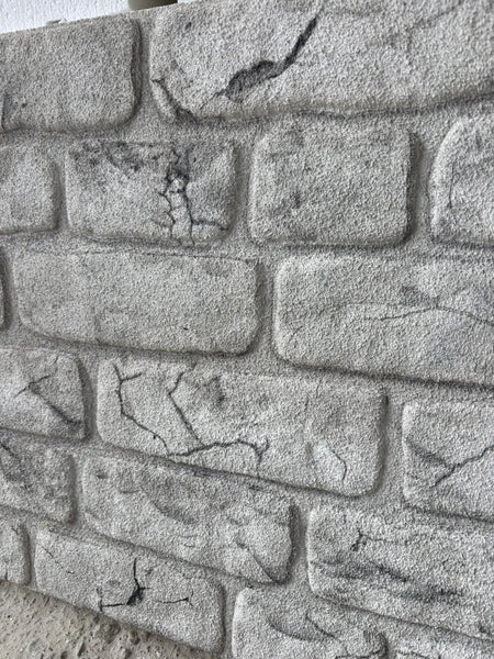 Софистициран дезен: Текстурата на стара, делкана тула во светло сиви нијанси дава „loft“ изглед кој е вистински хит во модерното уредување.